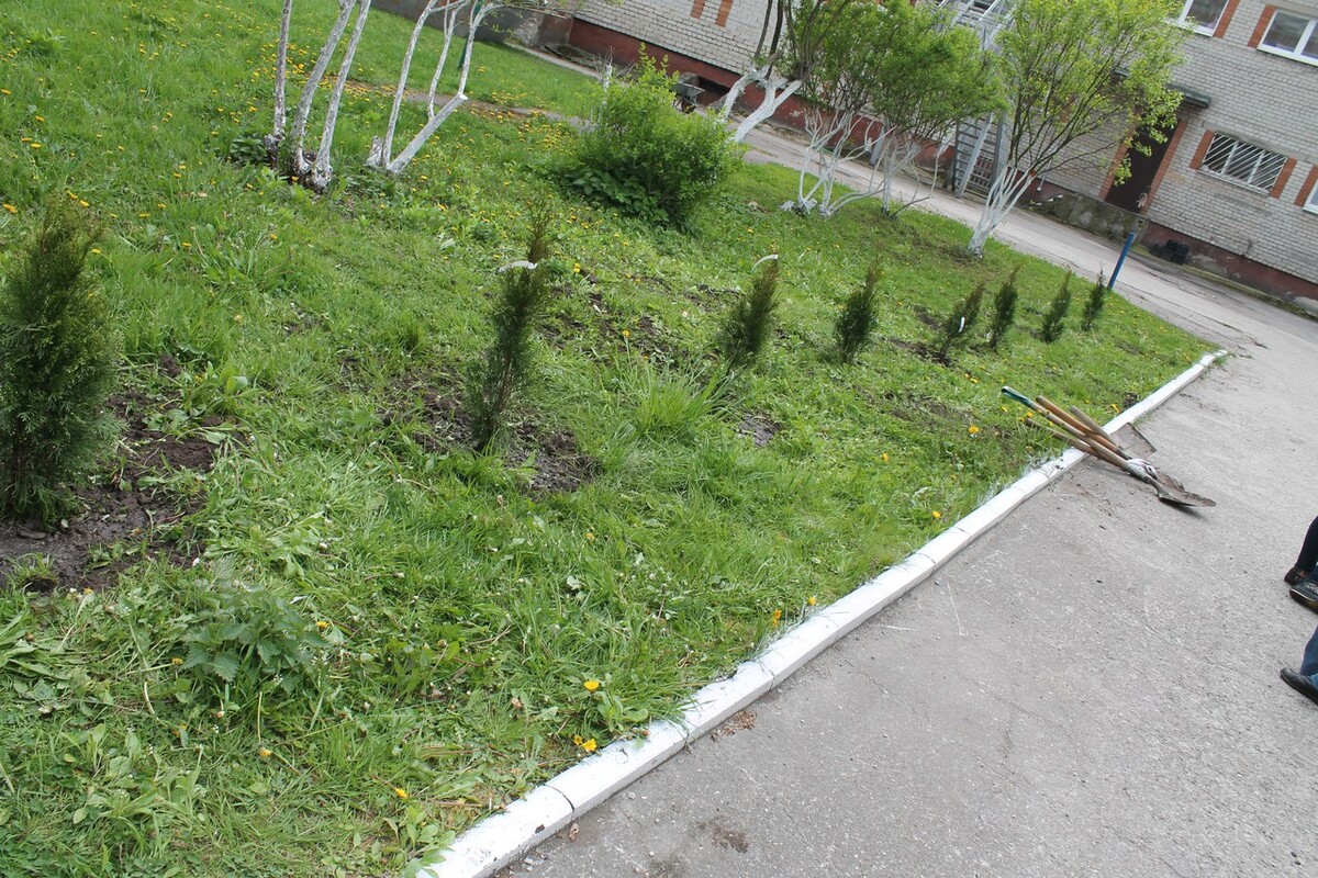 Высажено 5 кустов роз, 15 берёз и 1 айва